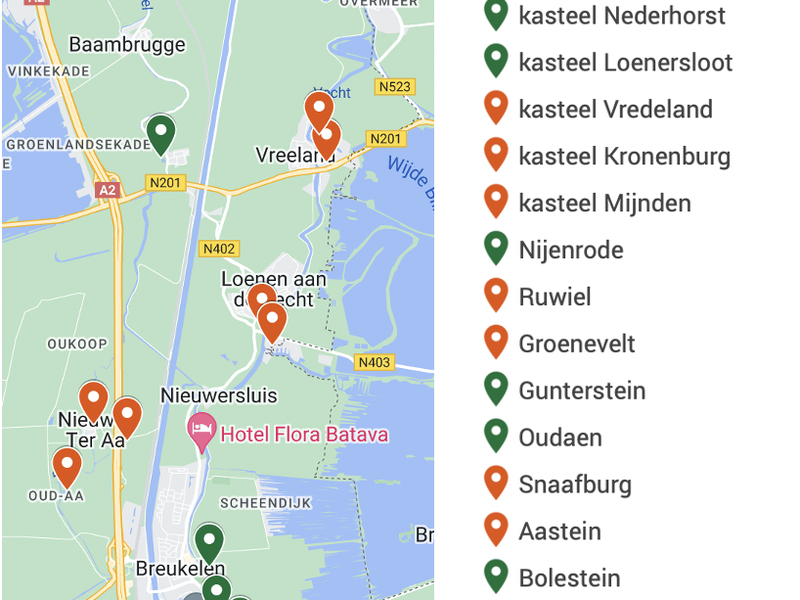 - In de machtsstrijd verrezen tussen 1250 en 1350 circa 13 kastelen langs de Vecht en Angstel, gebouwd door bisschop van Utrecht, graaf van Holland, Hertog van Gelre of leenmannen.