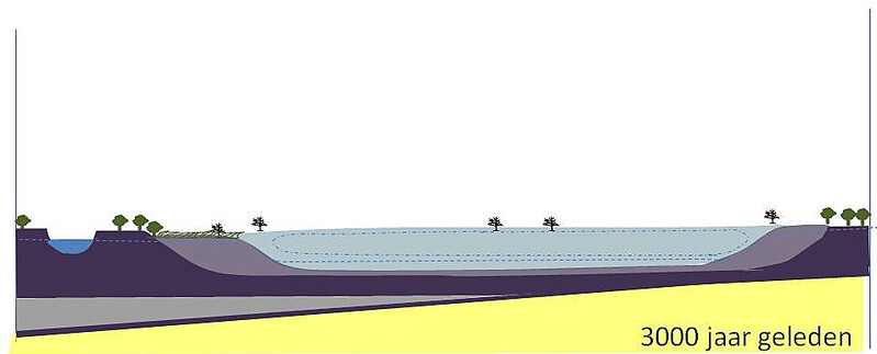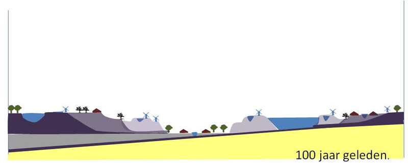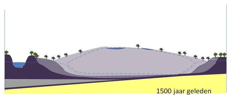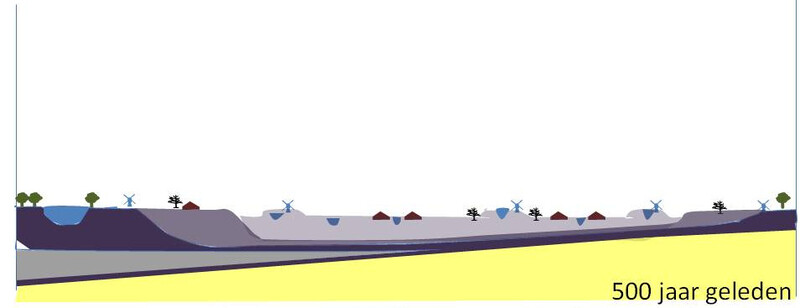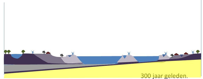 Er vormt zich een koepelveen dat na de ontwatering sterk zakt door inklink, windwatermolens moeten het gebied droog houden.