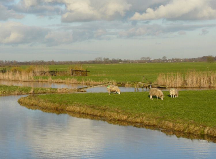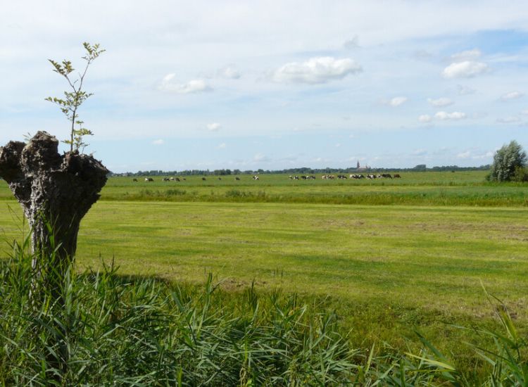 Veenweide met op de achtergrond de kerk van Vinkeveen.