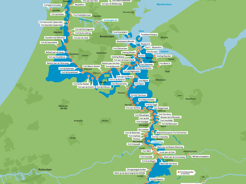De Nieuwe Hollandse Waterlinie en de Stelling van Amsterdam vormen samen de Hollandse Waterlinies. Een 200 kilometer lang lint van Edam tot aan de Biesbosch vol ingenieuze waterwerken, ruim 100 forten en een brede strook inundatiegebieden. Ooit gebouwd om ons in oorlogstijd te beschermen, met water, net diep genoeg zodat het land onbegaanbaar werd voor vijandige troepen. De waterlinies mogen hun militaire functie dan wel hebben verloren, maar nergens ter wereld is erfgoed en landschap te vinden dat hiermee vergelijkbaar is. Daarom staan de Hollandse Waterlinies op de UNESCO werelderfgoedlijst.